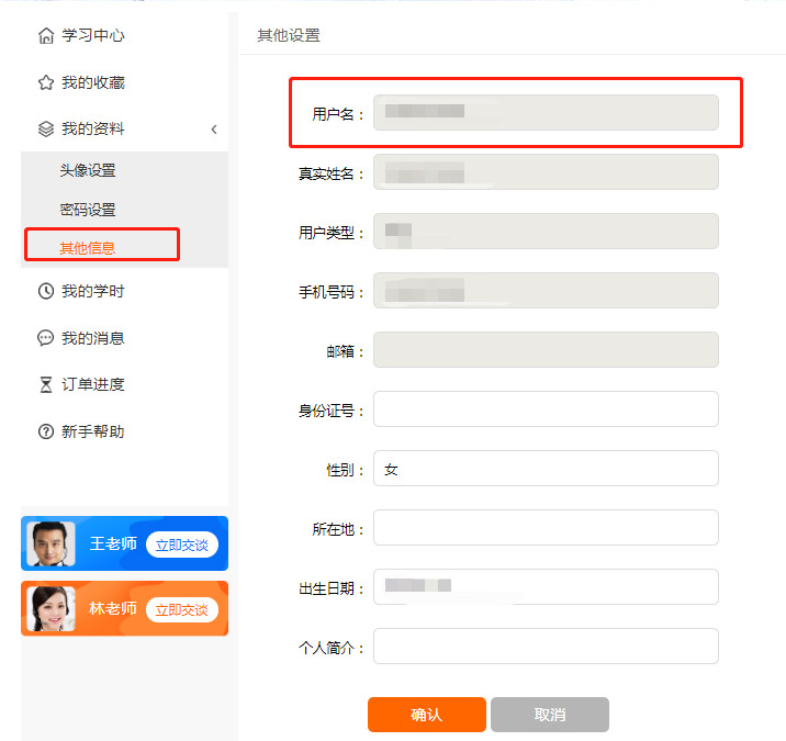 3、在个人资料里修改头像和个人其他资料,包括姓名、生日、手机号、年级、班级、学校、QQ、E-mail.