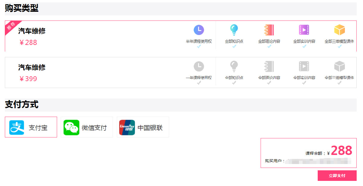 我们100VR教育培训网为您提供的支付方式有支付宝和微信支付。