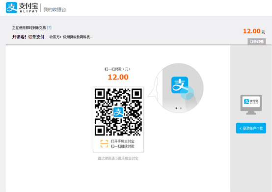 1.支付宝支付:可手机扫码或在网页上登录支付宝账号付款,完成后点击“支付完成”。